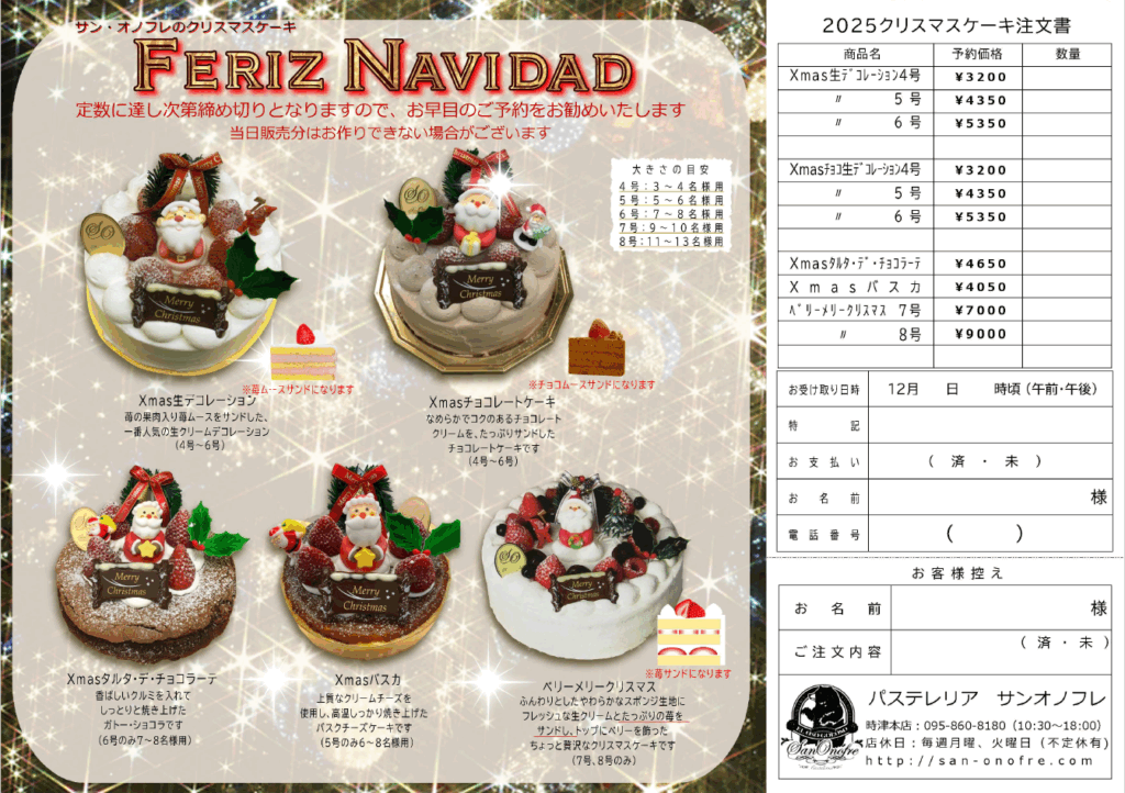 スペインの伝統的なお菓子を中心に長崎風に独自にアレンジしたお菓子も作っています。子どもからご年配の方まで安心して食べて頂ける洋菓子店として親しまれるお店作りに気を配っています。